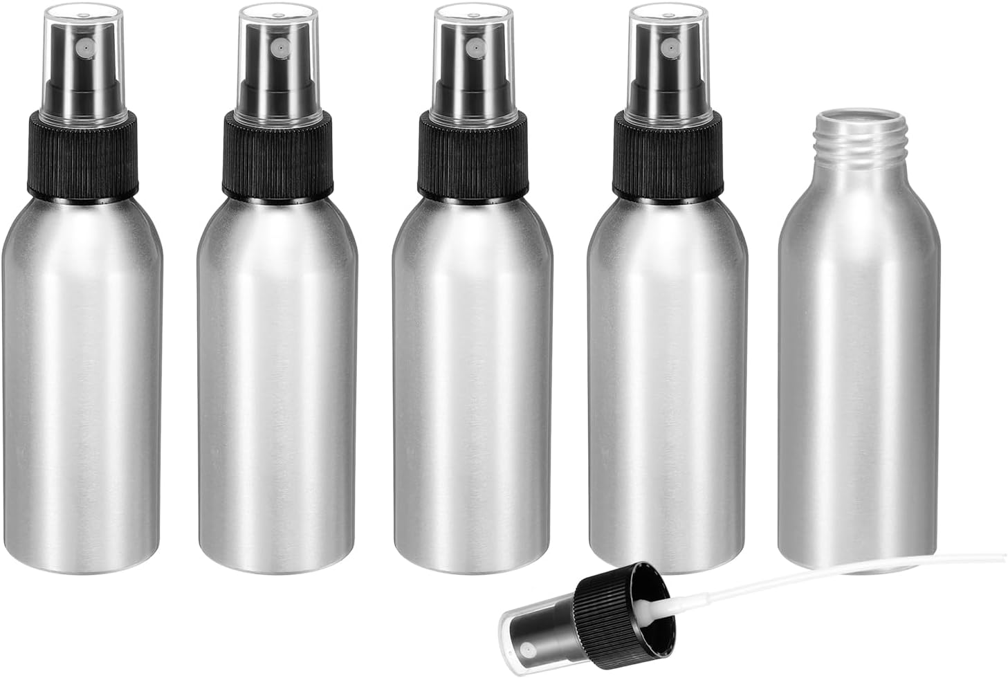 HARFINGTON 5pcs Aluminum Fine Mist Spray Bottles 100ml/3.4oz Metal Small Liquid Alcohol Refillable Travel Container with Black Plastic Nozzle Cap for Perfume Skincare Cosmetic Storage Bottle