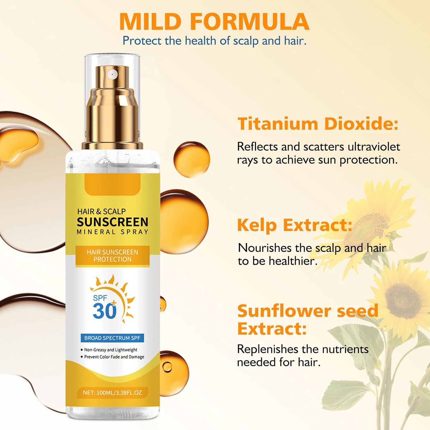- LIGHTWEIGHT FORMULA: The hair sun protection spray is refreshing and non-greasy, fast-absorbing that won't weigh down hair or leave residue, perfect for daily use.