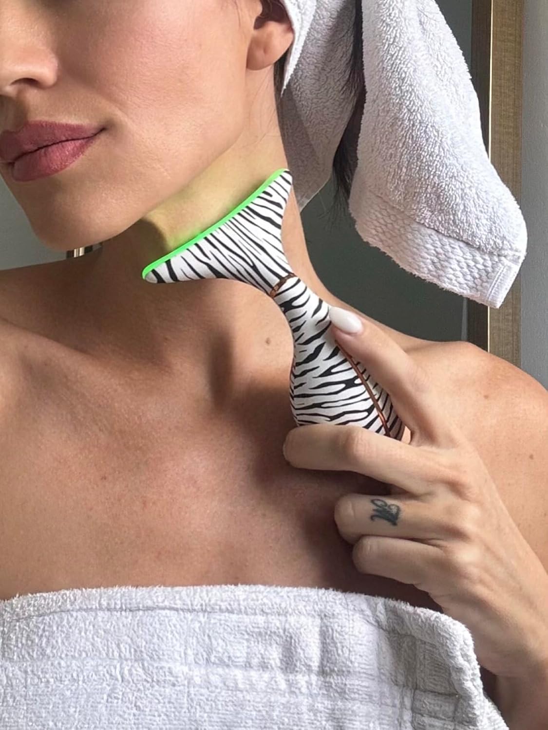 - Targeted red light for neck and face; a simple face massager tool for everyday self-care. For cosmetic use only; not a medical device.