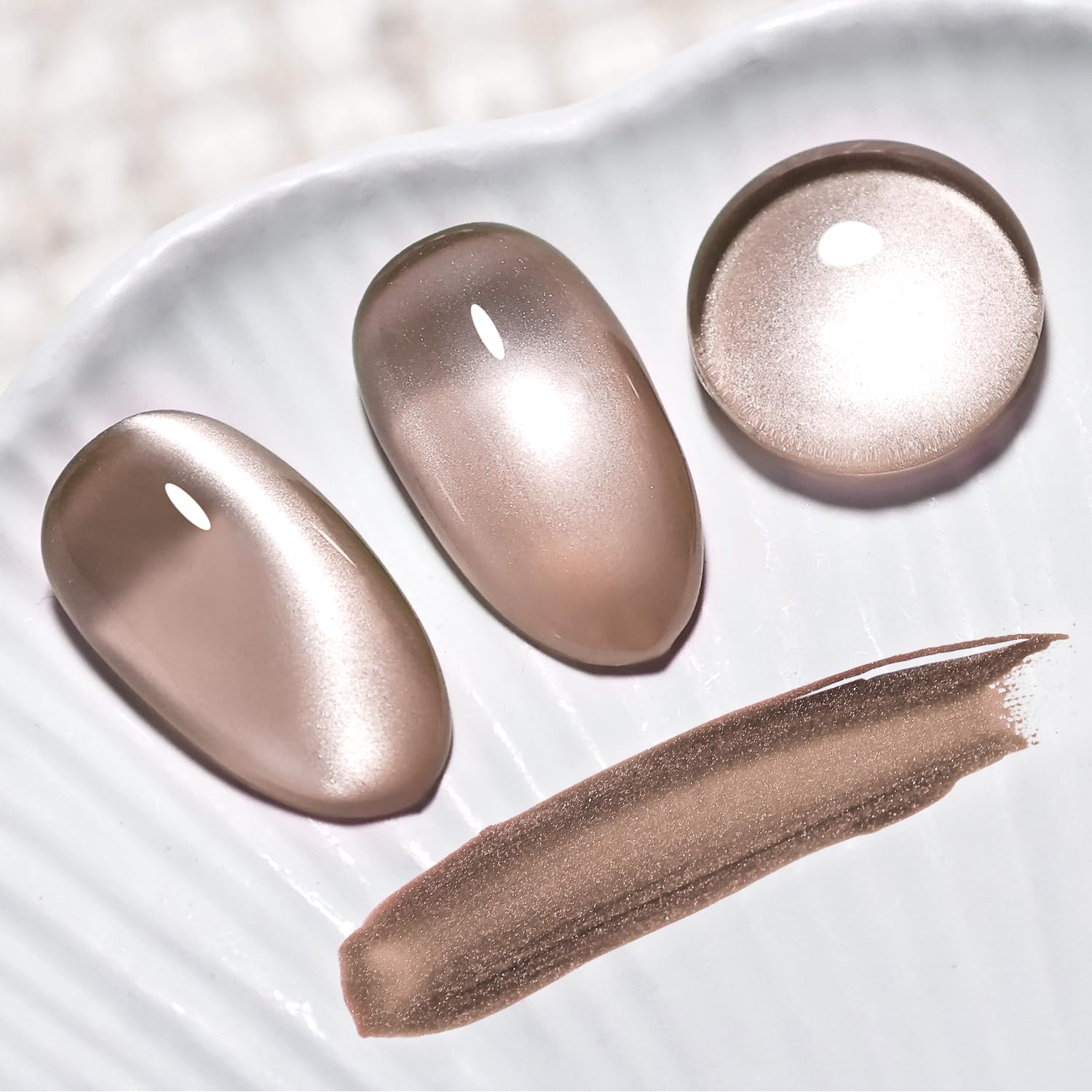 - You’ll Received:1Pcs Jelly Cat Eye Gel Nail Polish Brown.With the built-in Magnet, you can use the magnet to create desired pattern before curing.It creates a gorgeous momentum for your nails.( Need U V Lamp)