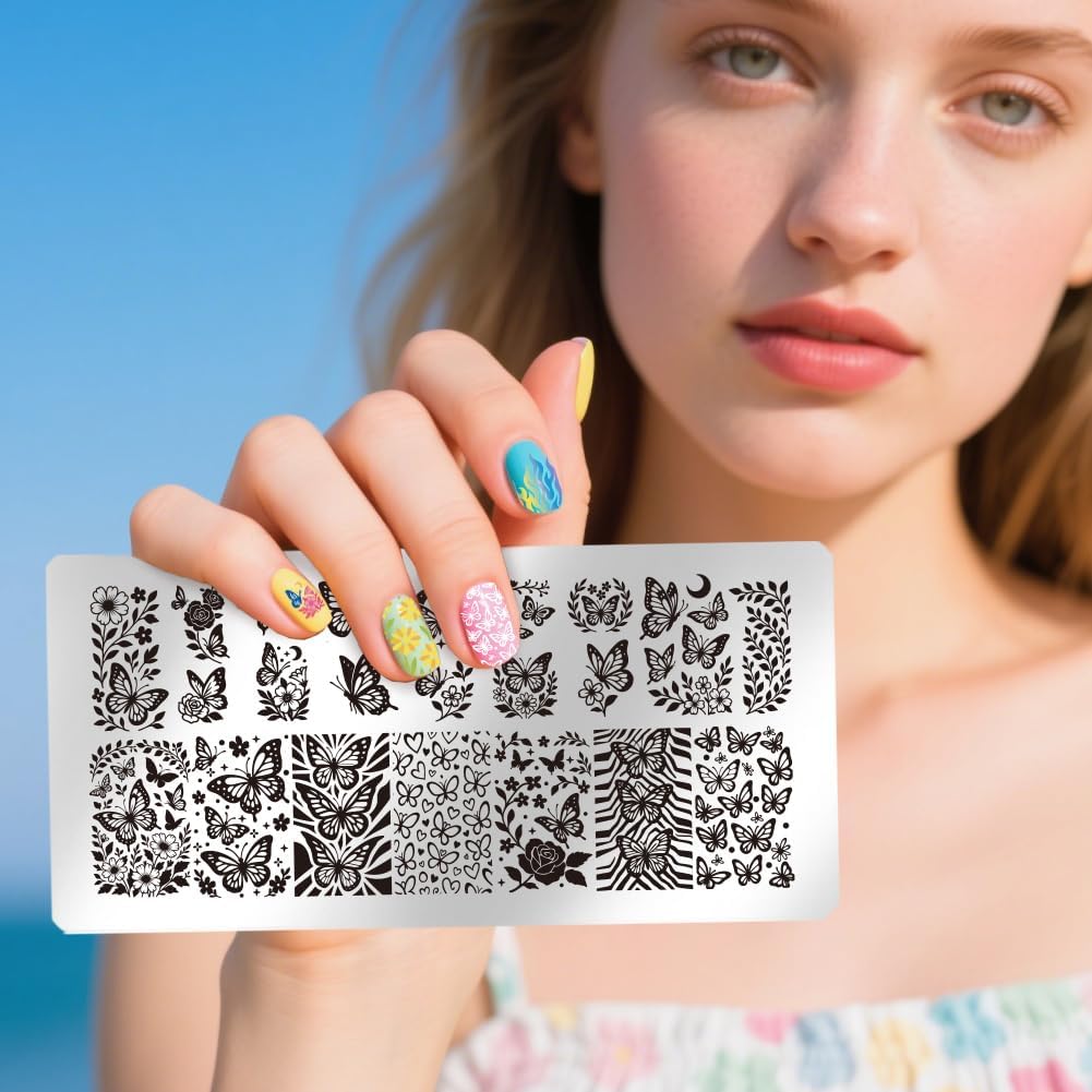 - Various Nail Stamper:The nail plate design uses butterflies, flowers, flames, stars, abstract textures and other patterns, which can fully meet your different styles of nail art needs. You can easily enjoy your own nail art at home.