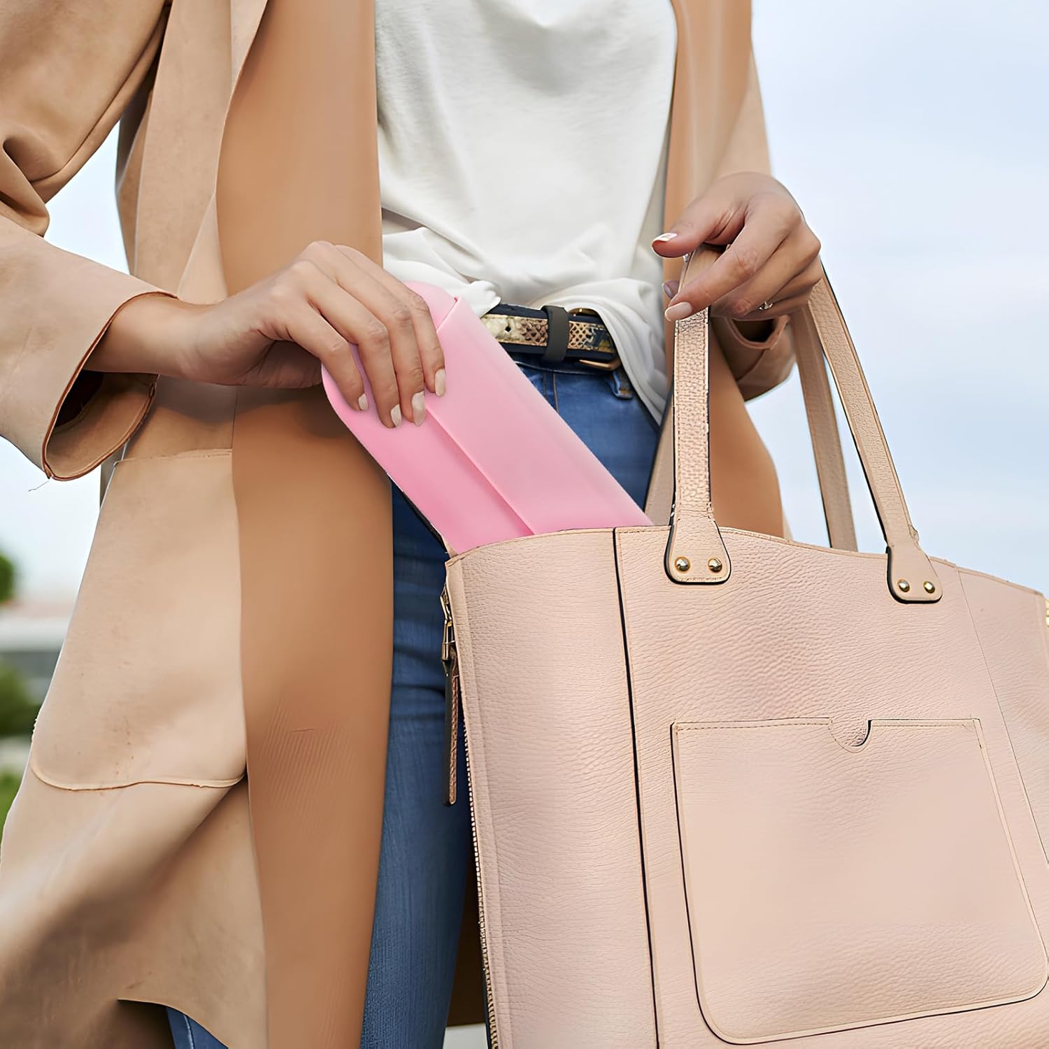 Silicone Makeup Brush Holder Travel Cosmetic Bag:Soft Portable Cosmetic Face Brushes Holder with Upgrade Anti-Fall Out Magnetic Closure, Large Travel Makeup Brush Case - Pink