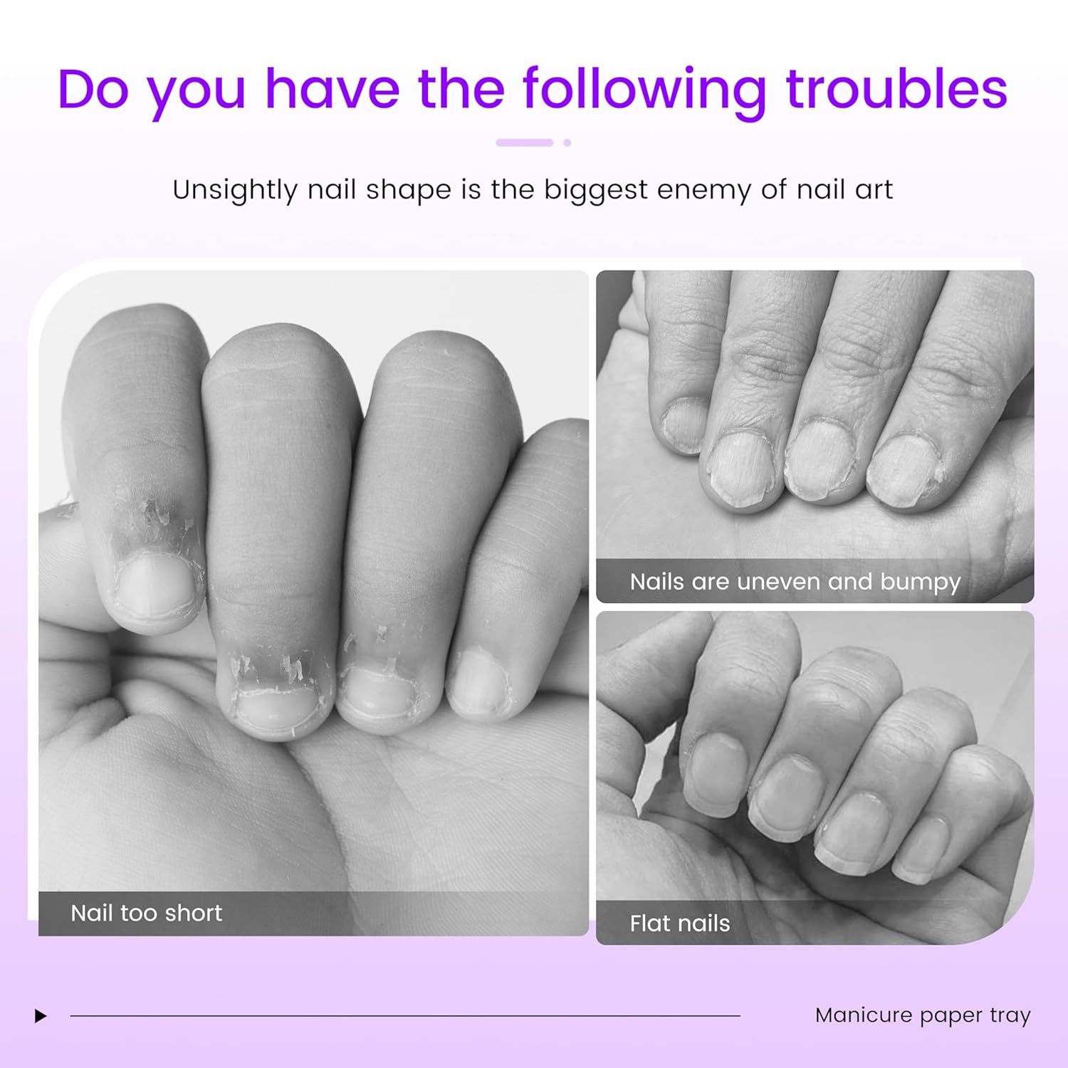 - Square Nail Forms: The nail forms is thickness enough and self-adhesive with adhesion, paper nail forms can fixed on your finger to prevent instability when you are applying the poly nails gel or nail extensions.