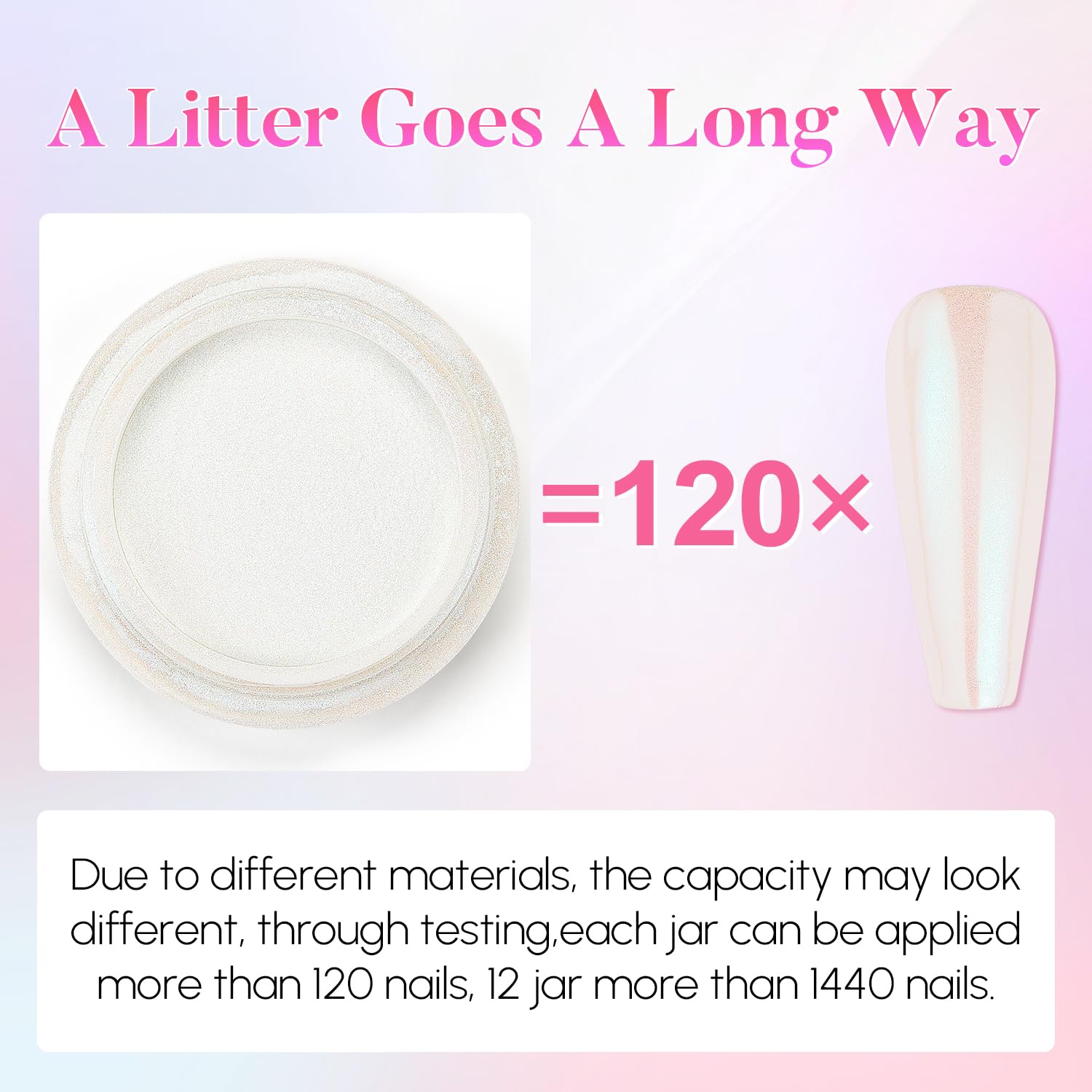 AIMEILI Pearl Chrome Nail Powder, Vegan, Cruelty Free, 12 Colors Aurora Metallic Holographic Mirror Effect Nail Art Pigment Iridescent Shell Glitter Nail Art