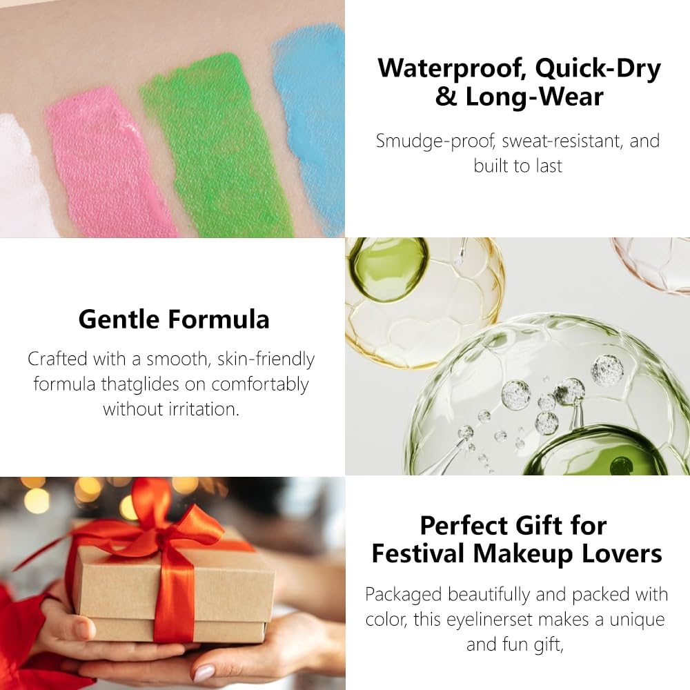 6 Pcs Colorful Matte Liquid Eyeshadow Eyeliner Set, White, Pink, Green, Blue, Purple, Dark Blue, Halloween Stage Clown Children's Makeup, Quick-Drying, Long-Lasting, Waterproof (6Pcs-Matte Colorful 1)