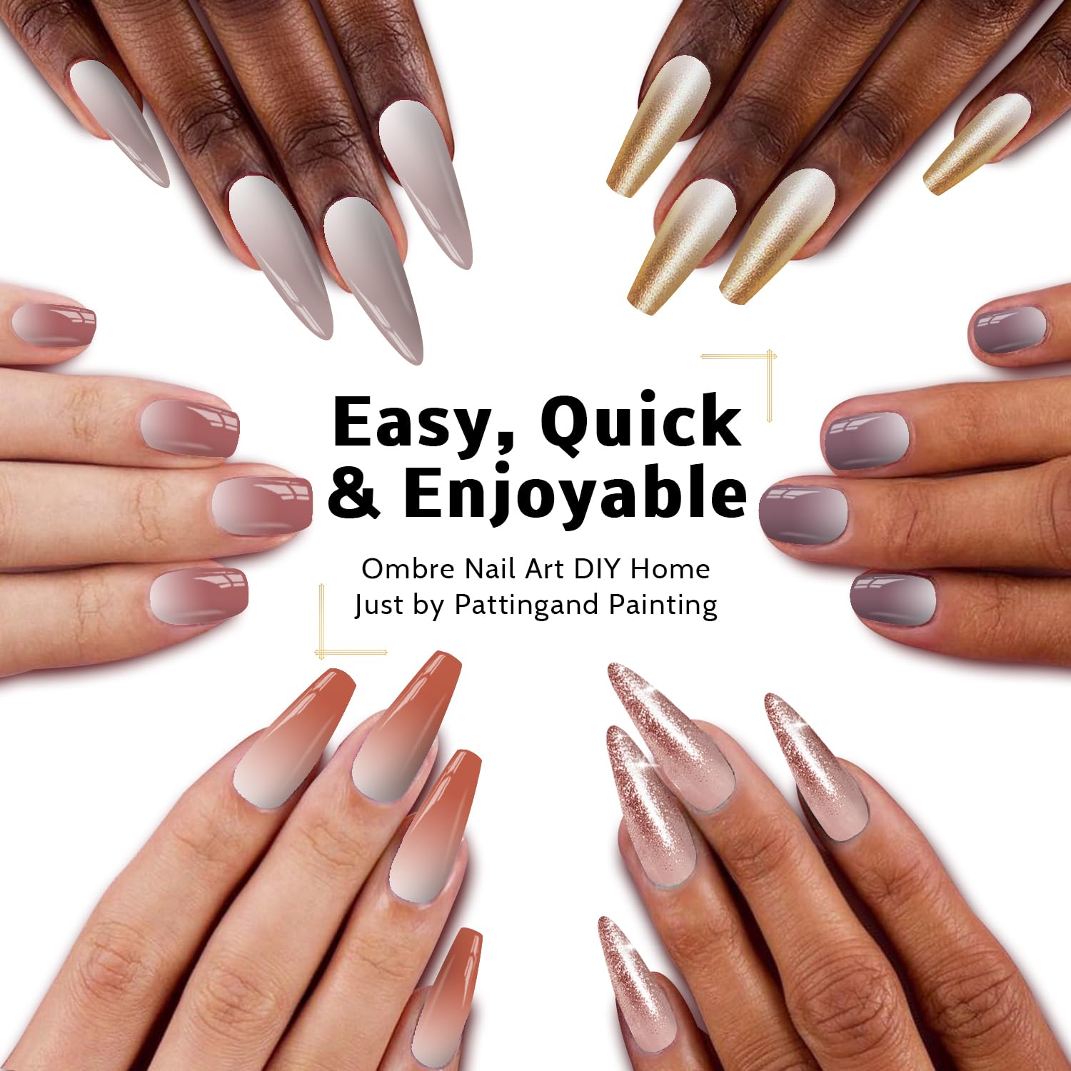 - 【EASY USE:】All steps are the same as normal UV/LED nail gel: 1.Clean and Prep; 2. Base coat and cure. 3. Apply color gel and cure. 4. Top coat and cure. 5. Clean nails and apply oil. Karroy ombre painting nail gel is easy to use: just grabbing a sponge and picking up your desire color, and patting sponge on your nail, you will get wonderful gradient coloring nails!