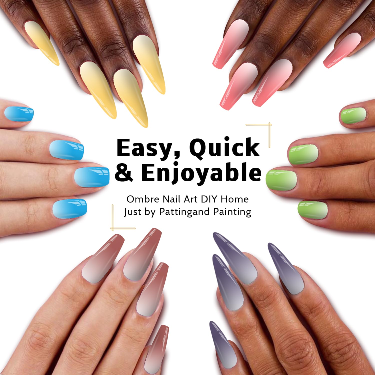 - 【EASY USE:】All steps are the same as normal UV/LED nail gel: 1.Clean and Prep; 2. Base coat and cure. 3. Apply color gel and cure. 4. Top coat and cure. 5. Clean nails and apply oil. Karroy ombre painting nail gel is easy to use: just grabbing a sponge and picking up your desire color, and patting sponge on your nail, you will get wonderful gradient coloring nails!