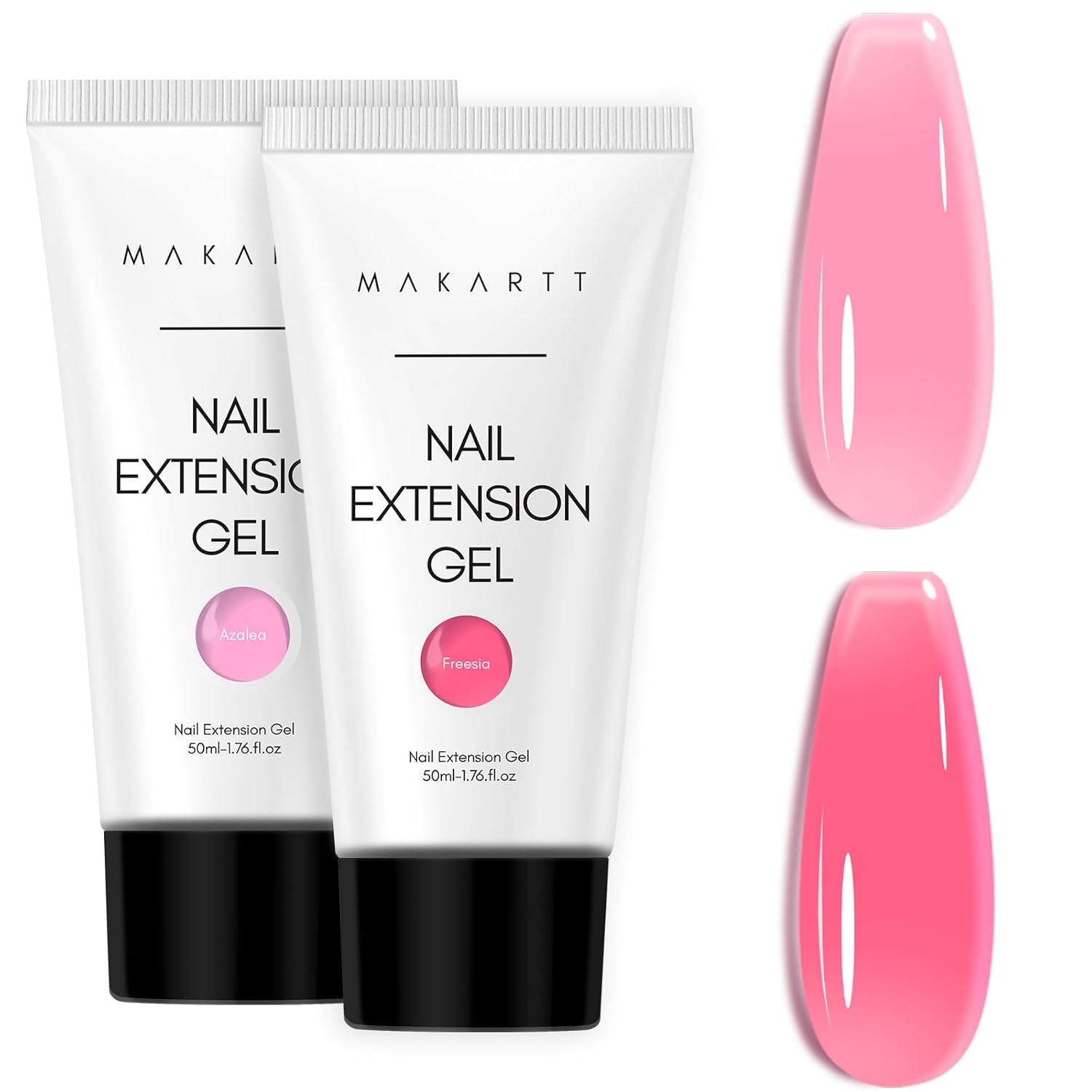 Makartt Poly Nail Gel Kit, 2PCs 50ML Transparent Pink & Hot Pink Colors, Large Capacity Poly Extension Nail Gel Kit, Strong Builder for Extension, 3D Diy Hard Gels Manicures Home Salon