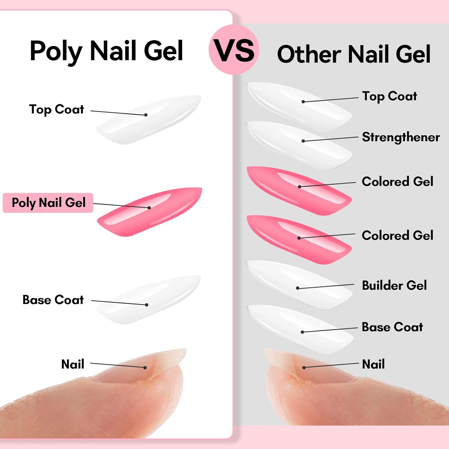 - Customize Your Nails with Ease-Our flexible nail extension gel set with the thick consistency and smooth texture, you can easily spread and sculpt the poly nail gel with the help of dual forms and slip solution. Please make sure using the slip solution to mould and shape the gel