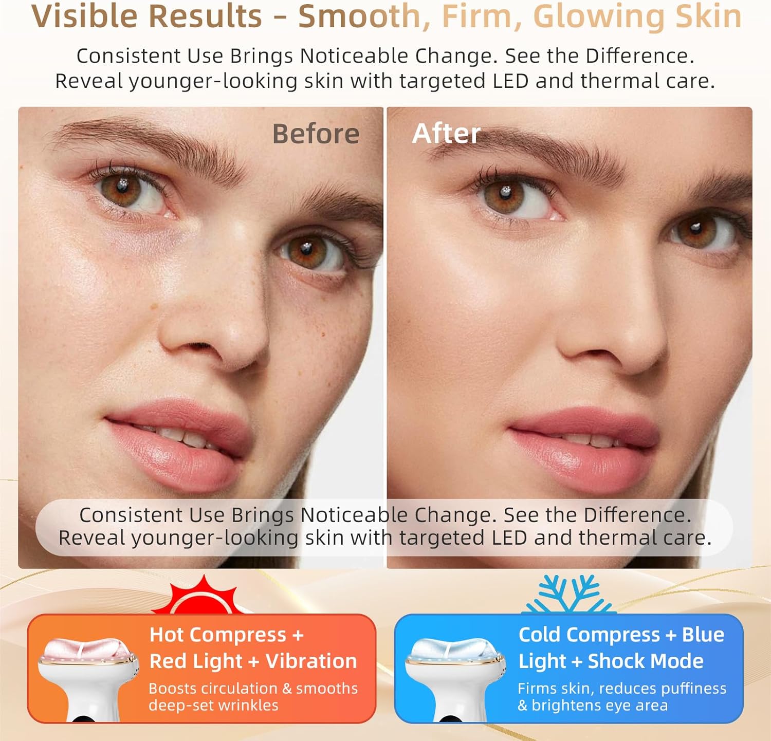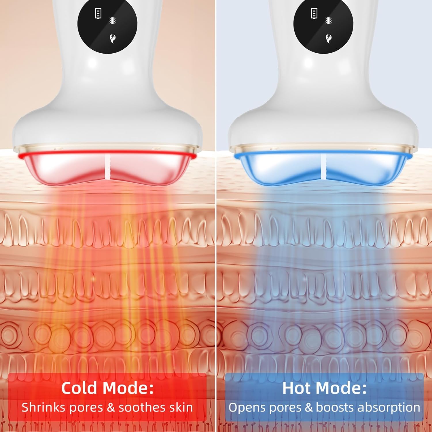 Cold Heat Facial Massager with Red Light Therapy, 7-in-1 LED Gua Sha Sculptor, Microcurrent, Vibration for Face Neck Eye Lifting, Wrinkles, Puffiness, Firming, USB-C Rechargeable Skincare Device