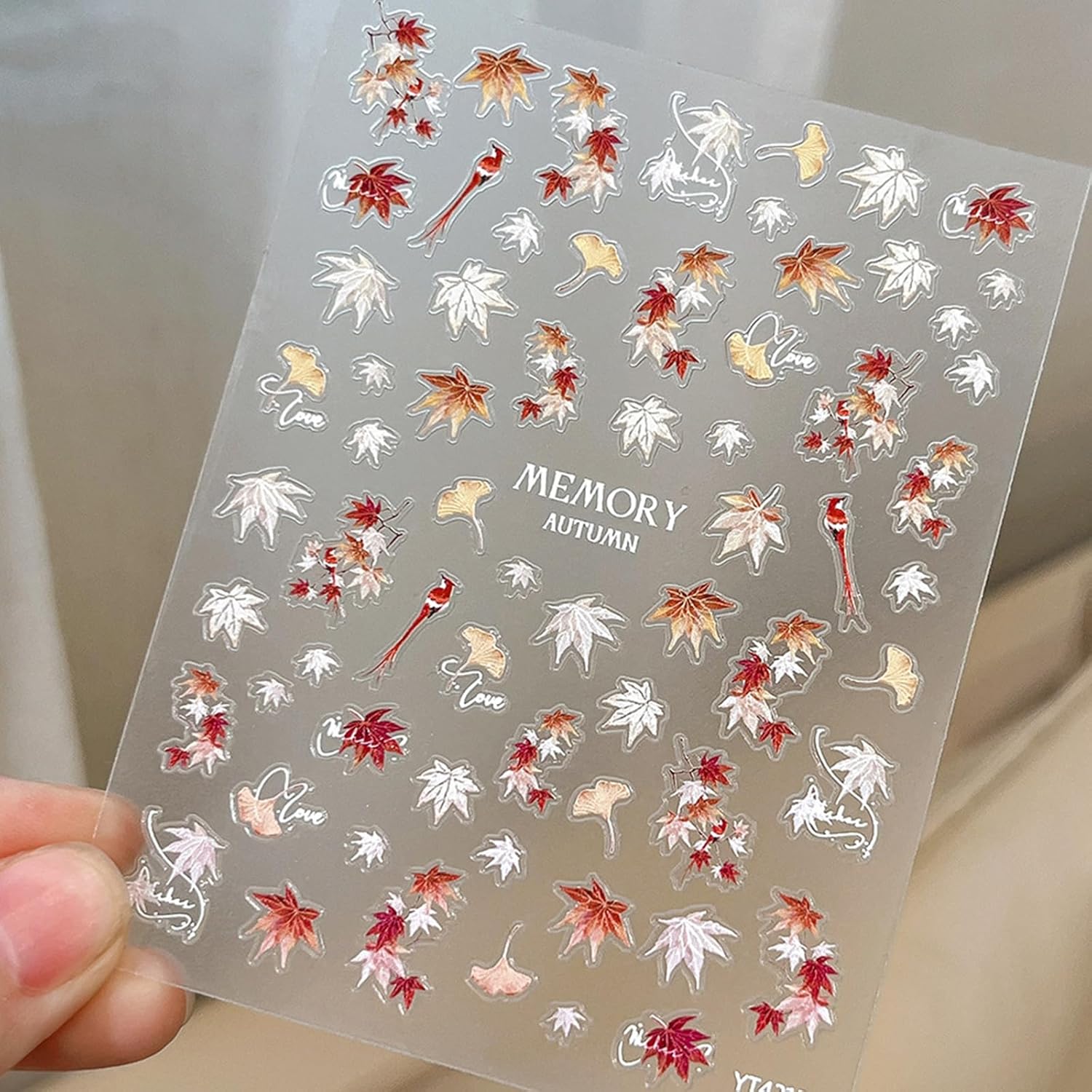 - Easy to Use: This autumn leaf nail stickers for nail art is self-adhesive. just use tweezers to tear off the cute nail stickers, and then stick the 5d nail stickers on the nail.You can also use nail gel to cover to make the beautiful stickers last longer