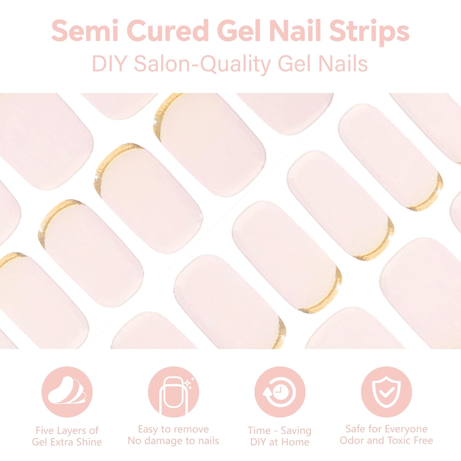 Semi Cured Gel Nail Strips-Quick Press on Nails Nude Glue on Nails, French Tip & Simple Designs, Semi Gel Nail Stickers for Everyday & Housework,Works with Any UV/LED Lamps(Ruby French)
