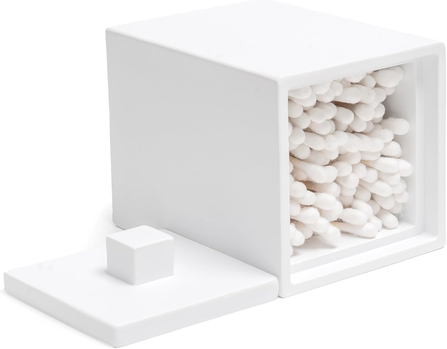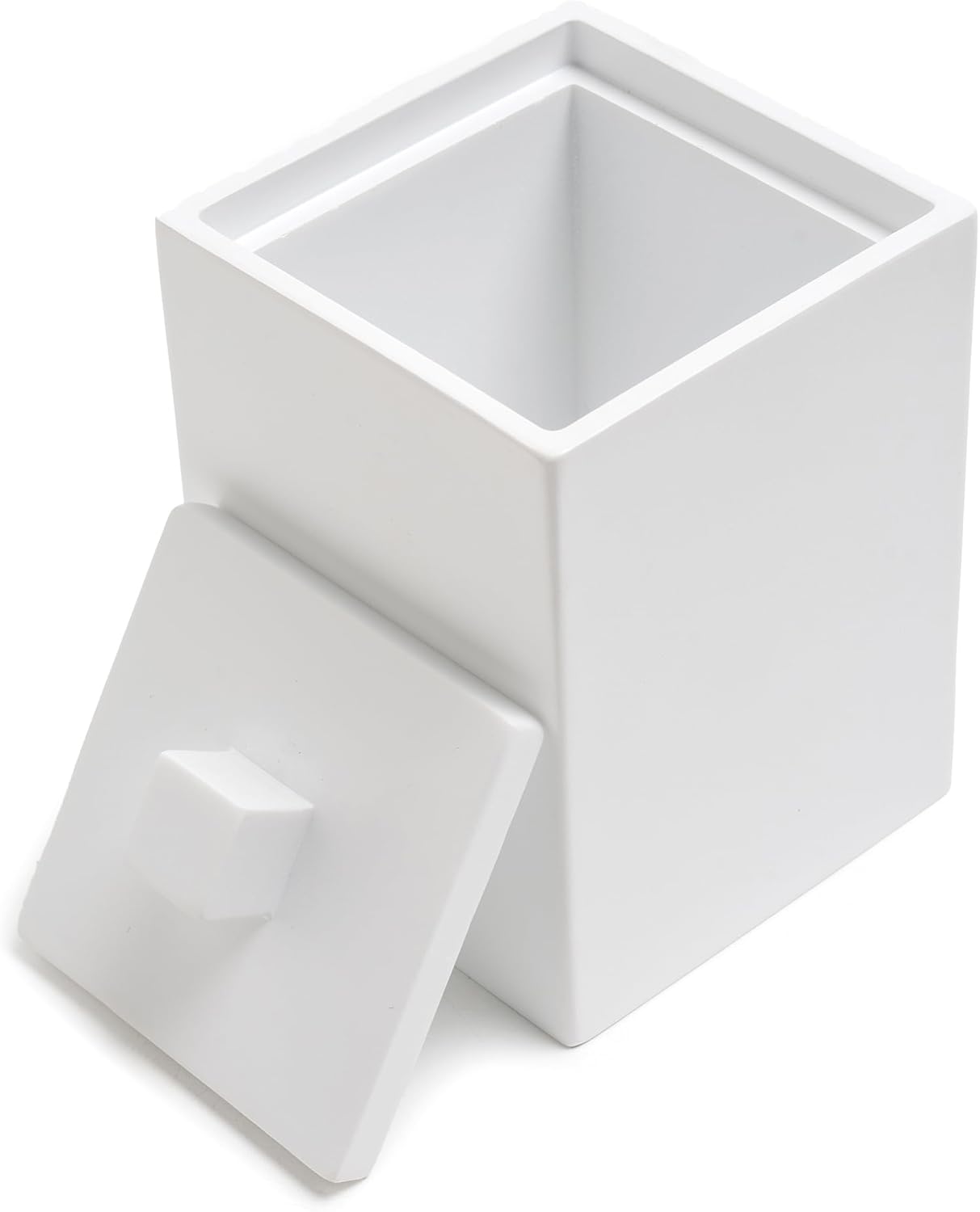 Bathroom Qtip Holder, Resin Cotton Swab Holder with Lid Qtip Holder Dispenser for Cotton Ball Bath Salts Storage Christmas Birthday Anniversary, Matte White