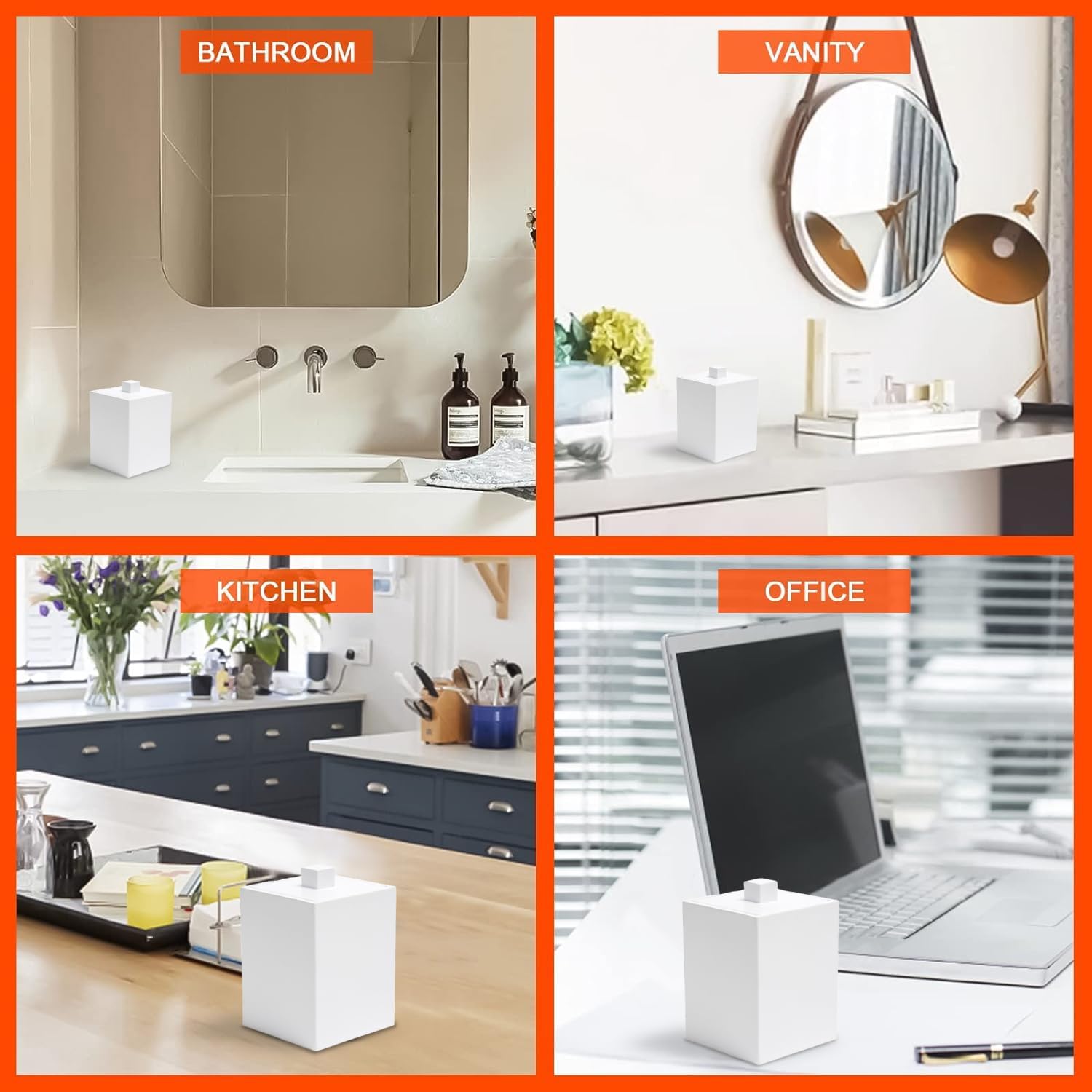 - COME WITH LID - Resin cotton swab container decorated with a lid that keeps dust away and water damage, ensures your cotton swabs dry and clean.