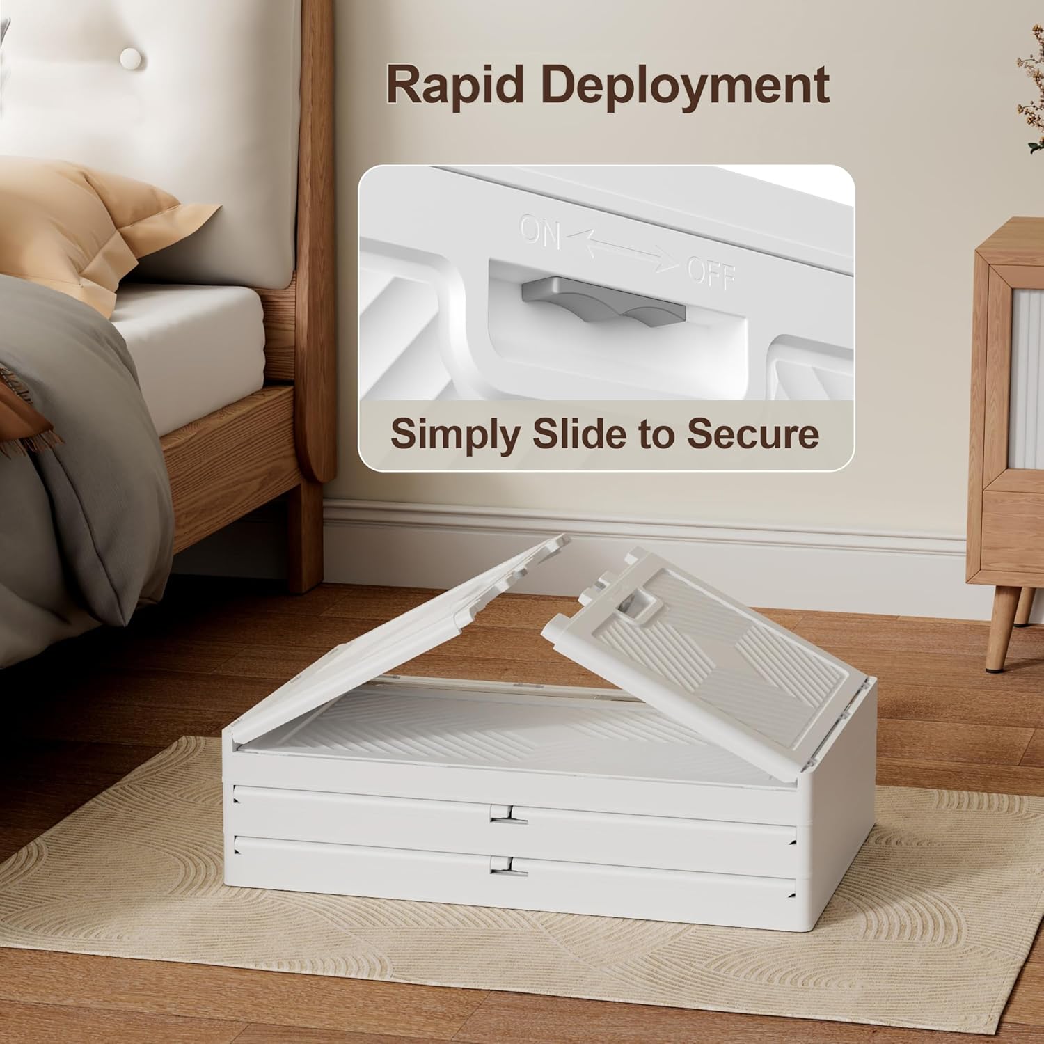 - [Easy to Move] The collapsible storage box is made of high-strength PP material, which is very durable. Four rotating wheels are installed at the bottom, so that it can move when cleaning, more convenient for you to clean