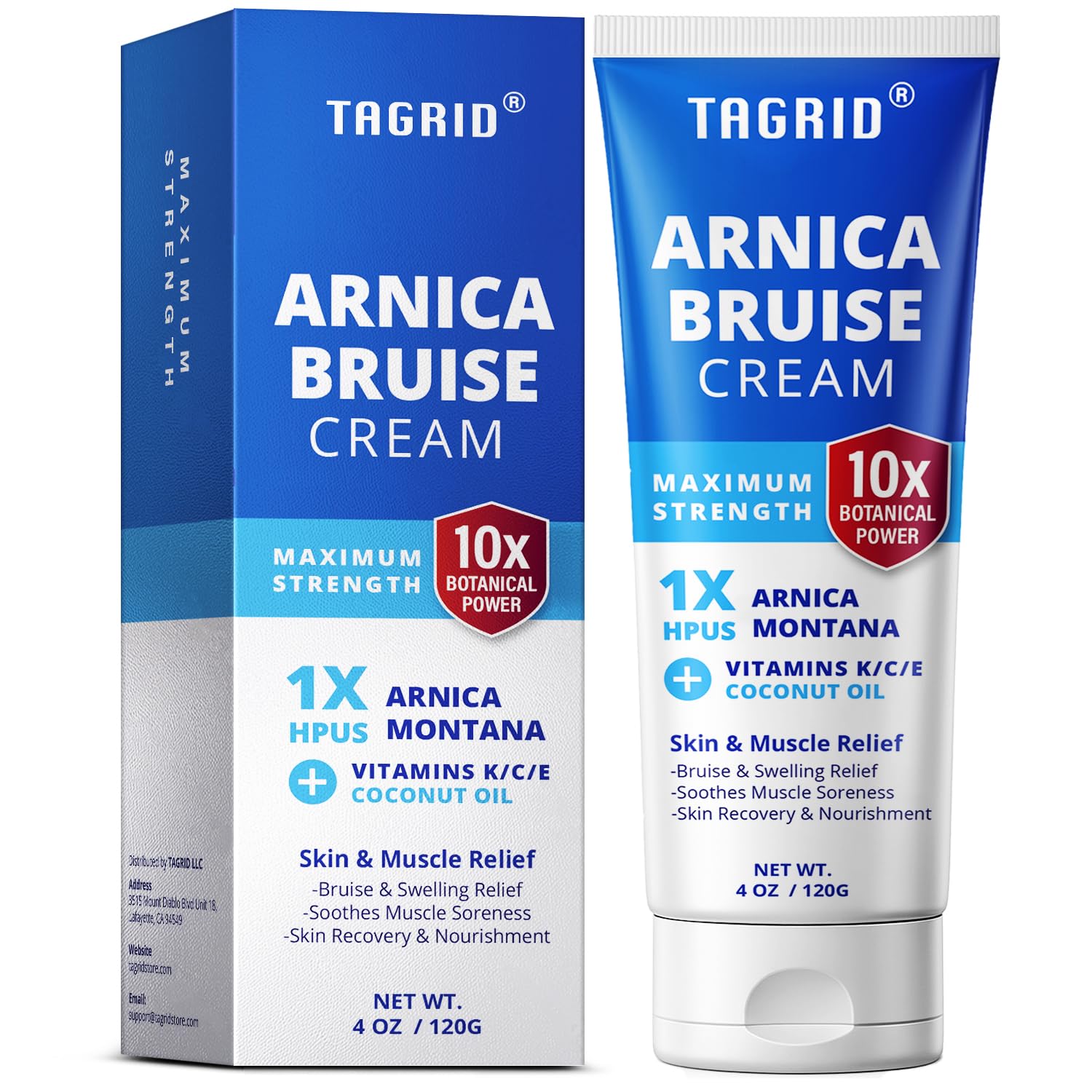 TAGRID Arnica Cream: Maximum Strength Fast Pain Relief Bruise Cream with Vitamin K for Bruising and Swelling on Thin Skin, Joint Pain, Muscle Pain, Soreness (4 OZ)