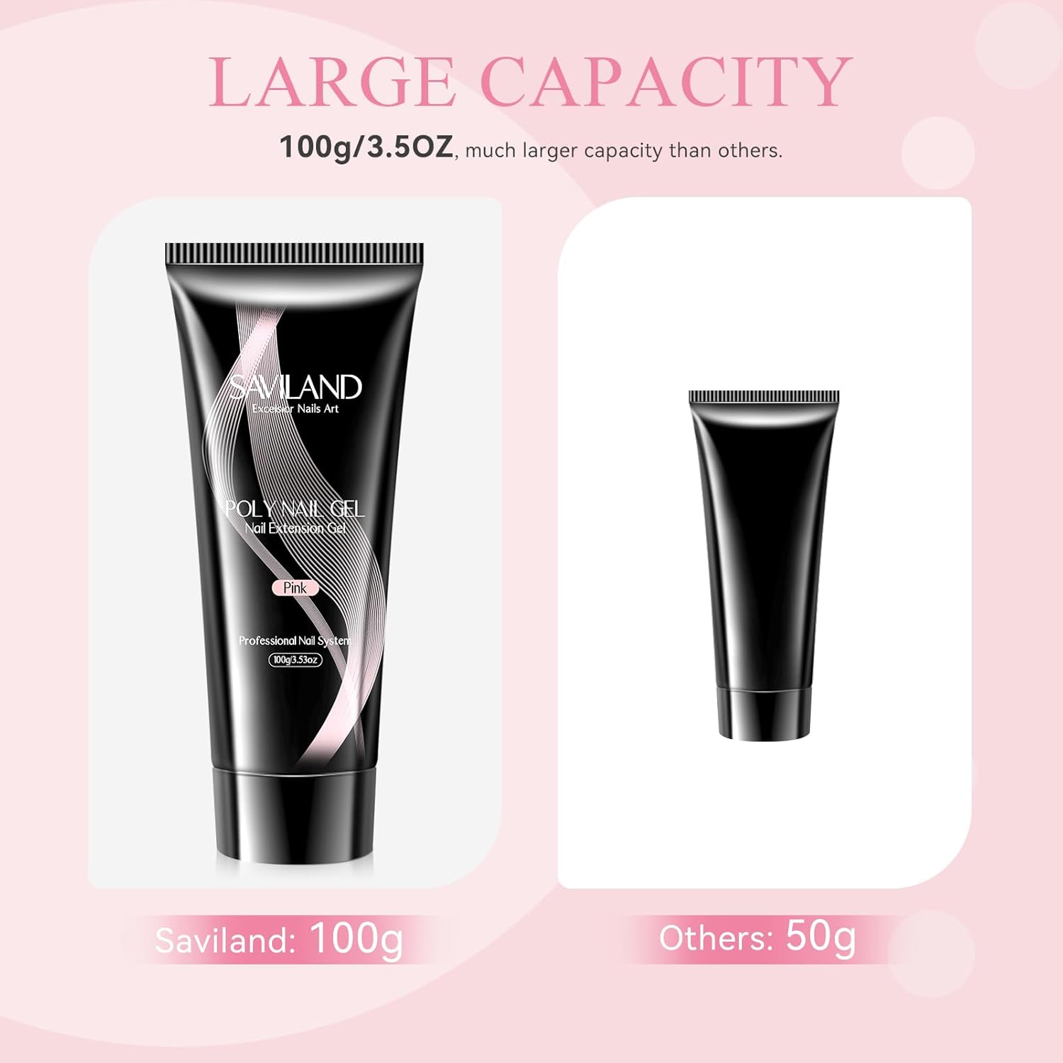 - ๐ท SAVILAND BIG POLY NAIL GEL-Saviland 100g/3.5oz pink poly extension gel with popular classic color, can do nail extension, poly gel nails, nail enhancement, nail art, stick sequins or decorations, etc. 100g super large capacity, valuable, and long service life. It is very suitable for professional nail salons and nail lovers who often make extension. Can mix with other colorful gel to create various and attractive nail art.