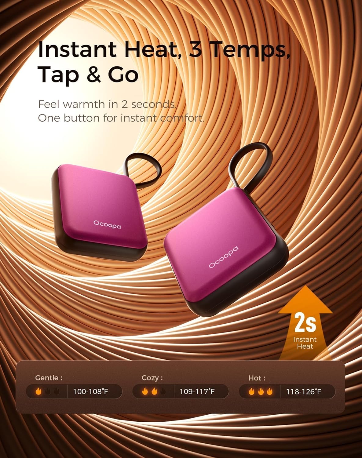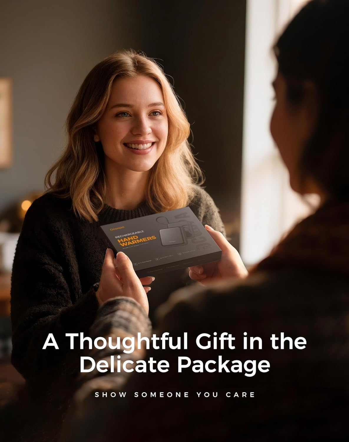 - 3.5-7 Hours All-Day Long-Lasting Heat — Keeps hands cozy from your morning walk to evening dinner without mid-day charging.