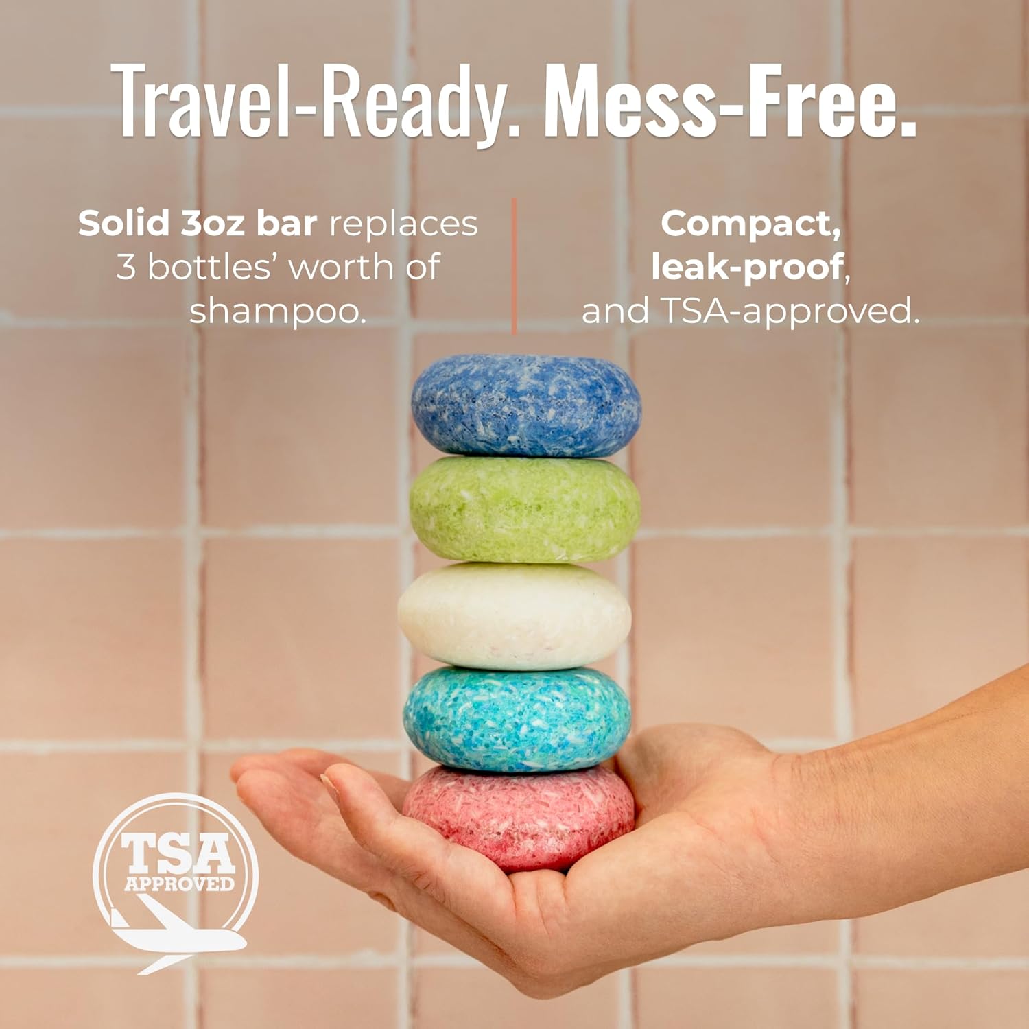 - TRAVEL-FRIENDLY SOLID DESIGN: Compact, TSA-approved, and leak-proof; this solid shampoo bar fits easily in any travel kit or gym bag for mess-free, on-the-go haircare