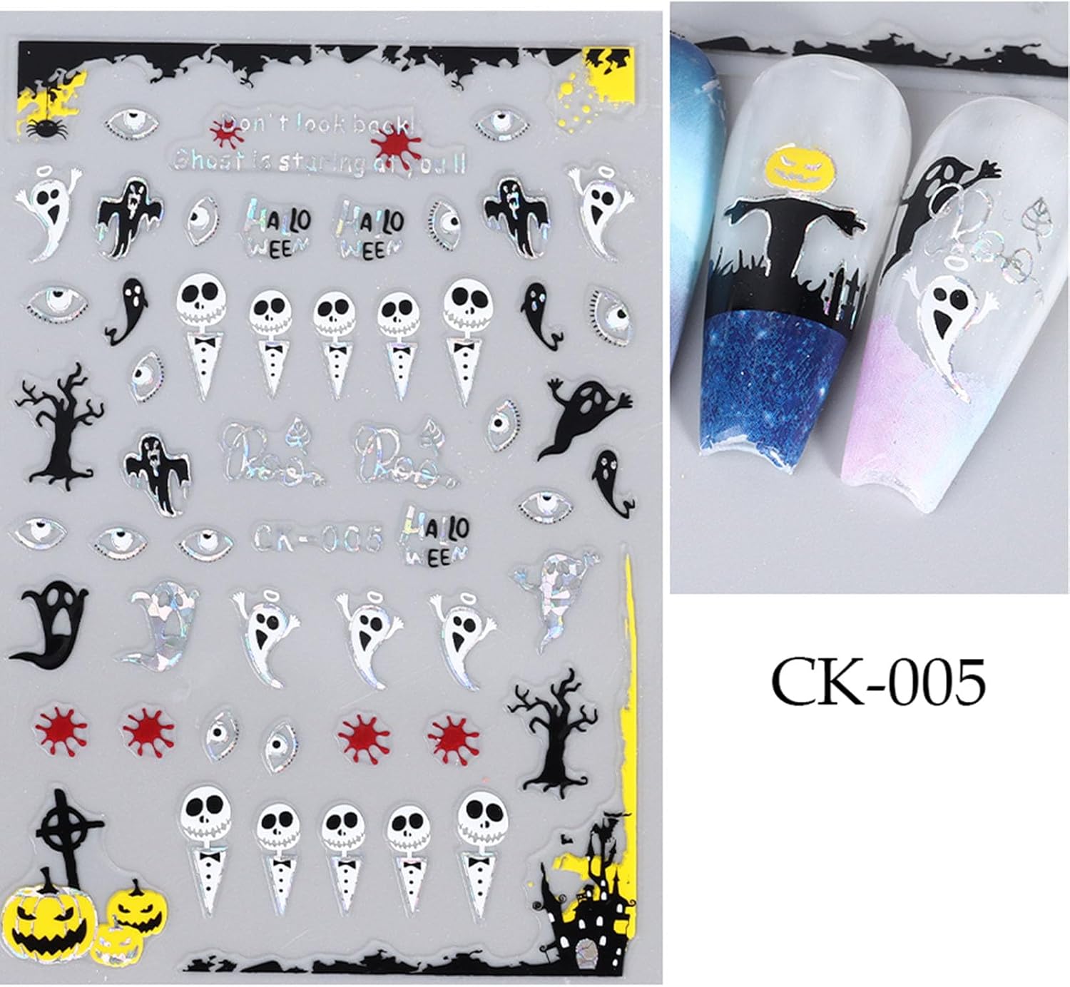 - Easy to use: Halloween nail stickers are self adhesive, just peel them off gently with your hands or tweezers, then place them on your nails and press them gently for a few seconds, you can apply a layer of transparent nail polish after attaching it to the nail