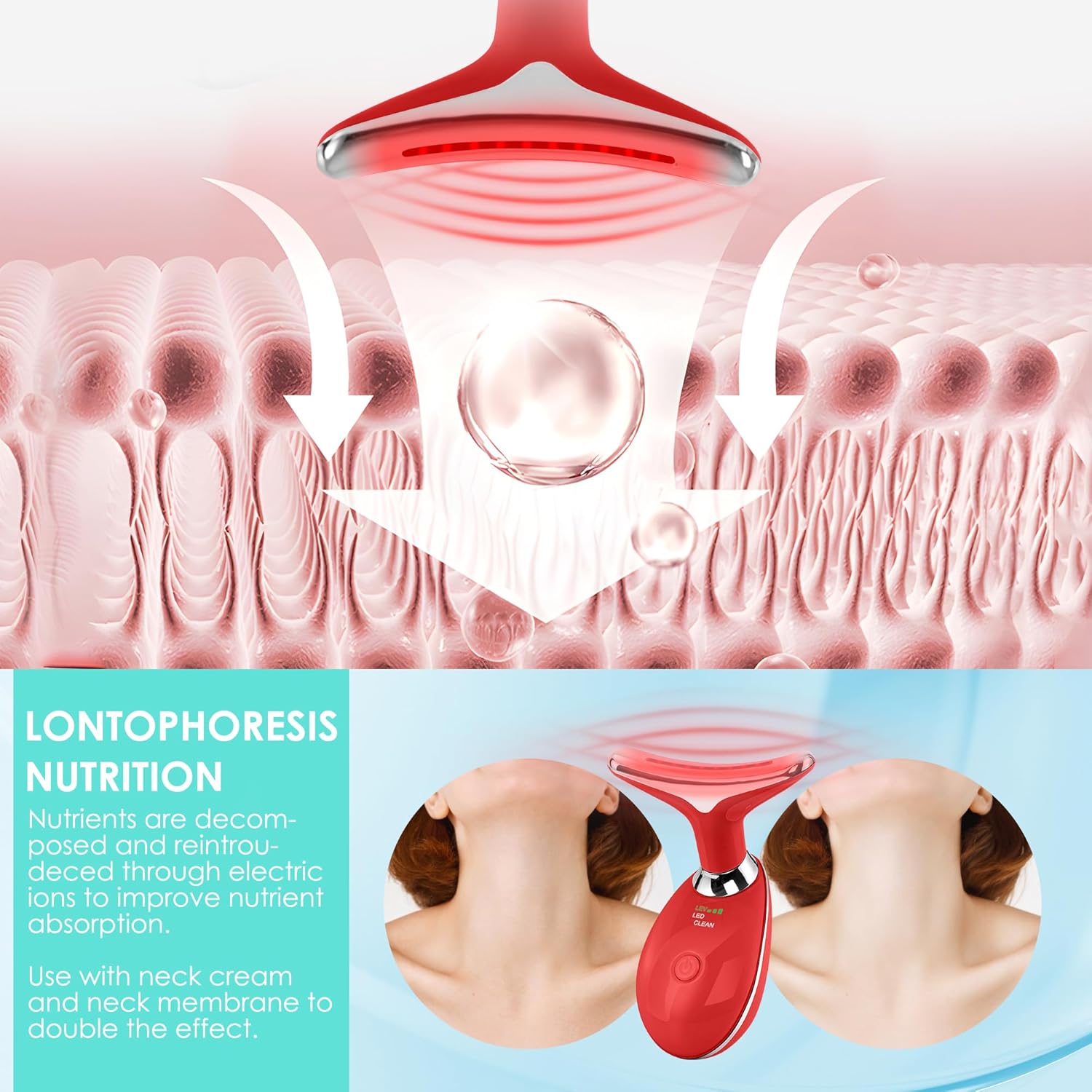 Facial Massager Red-Light-Therapy-for-Face and Neck, Face π² culpting Wand with 7 Color (Bright Red)