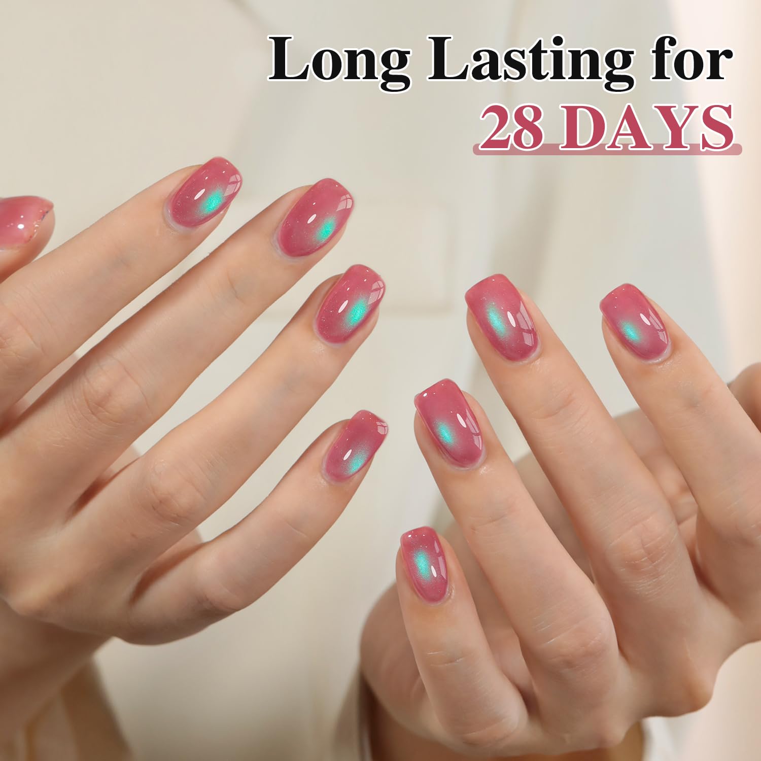 Double Rhythm Jelly Glass Cat Eye Gel Polish with Magnet 15ML Holographic Glitter Shimmer Translucent Sheer Color Magnetic Nail Polish Salon DIY at Home (Pink Teal-MC1267)