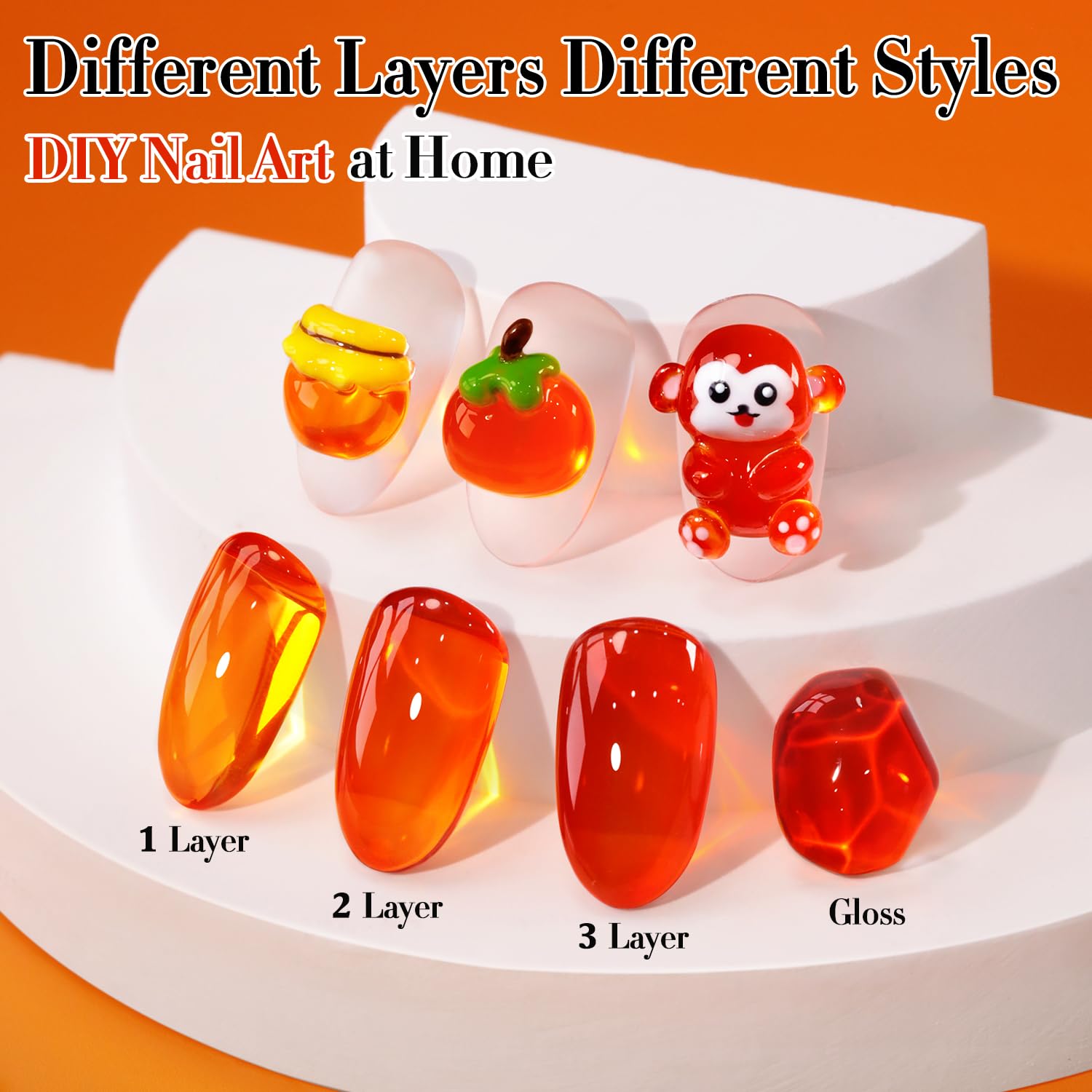 Double Rhythm 0.5 Oz Jelly Gel Polish Same Color Same Bottle Sheer Neutral Natural Light Milky Pastel 15ML Translucent Polish Art DIY at Home (Orange-A1635)