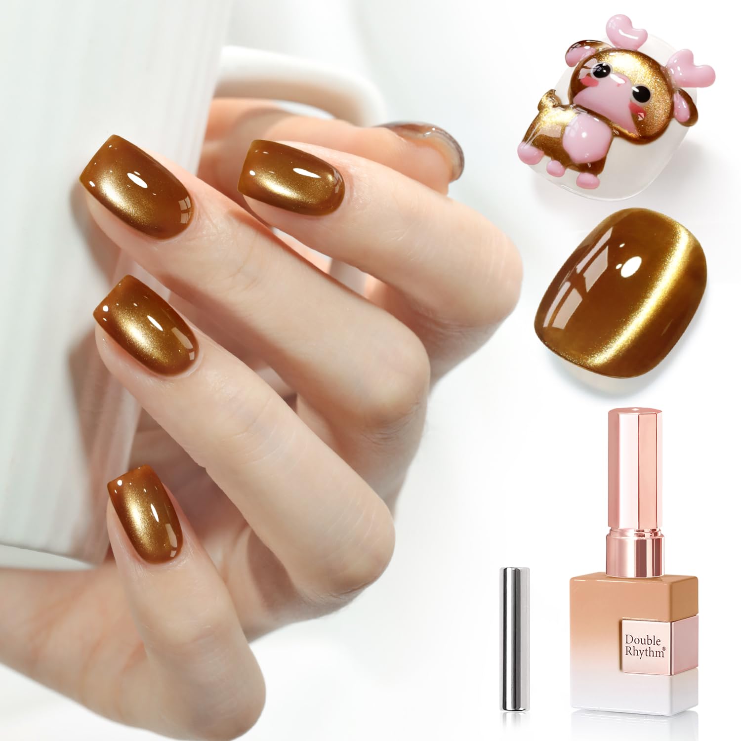- Same Color Same Bollte Cat Eye Gel Nail Polish : Double Rhythm cat eye gel nail polish kit includes 1 color 15ml / 0.5 fl.oz gel nail polish. The cat eye gel can be combined with different bacse colors arbitrarily, you can get different colors nail art.You can use different base color to creat different sytles.