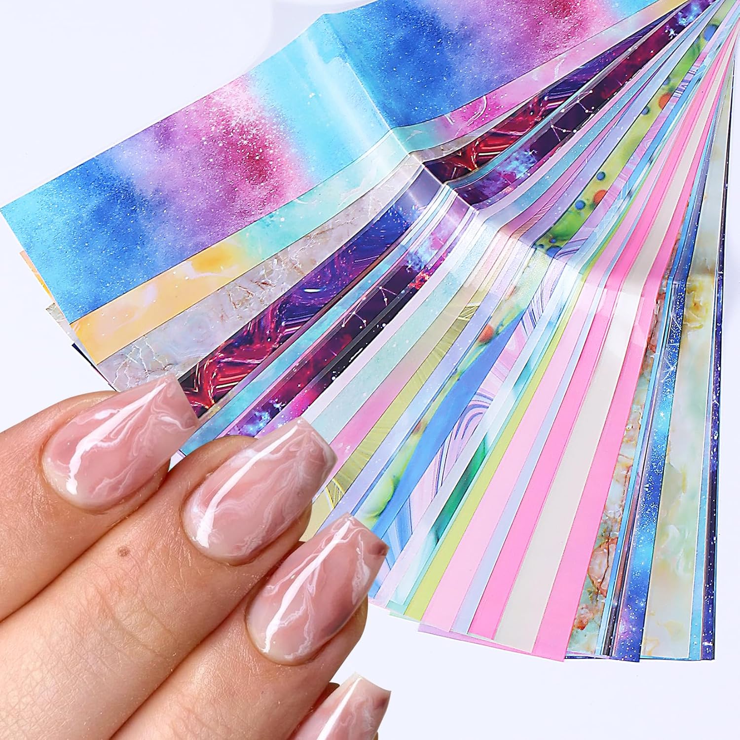- Prefect Nail Foil Set: This nail foils transfer nail art sticker features 50 starry marble foil stickers in non-repeating designs, measures approximately 1.5 x 7.8 inches/4 x 20 cm, 50 pieces in a pouch, one sticker makes at least 10 nails, this nail sticker set offers endless possibilities for creating stylish, personalised nail art.