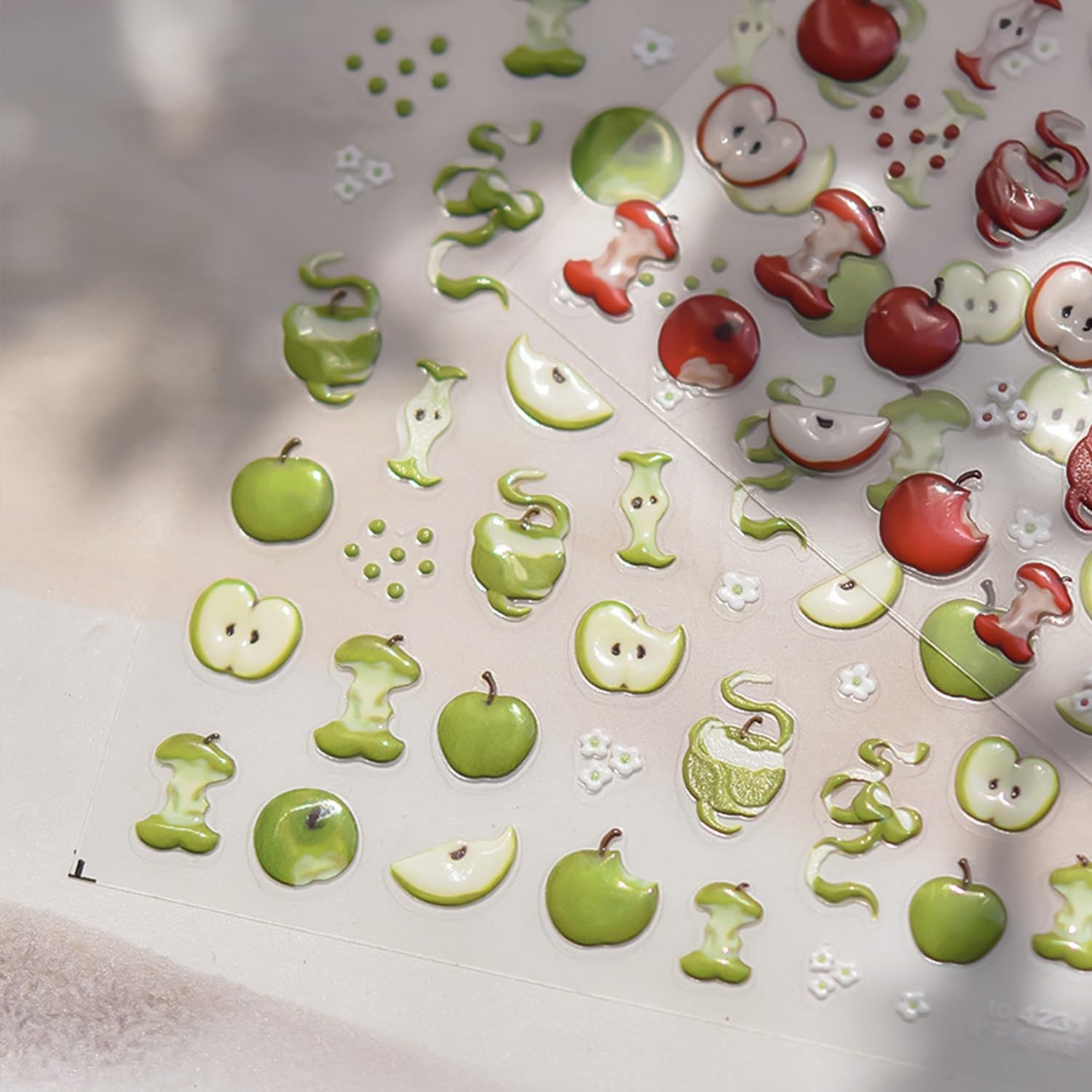 - Quantity:You will get 1 sheet apple nail art stickers decals for nail art,cute green apple flowers nail stickers, 3D self adhesive nail design which can offer you multiple choices, meet your nail decoration needs