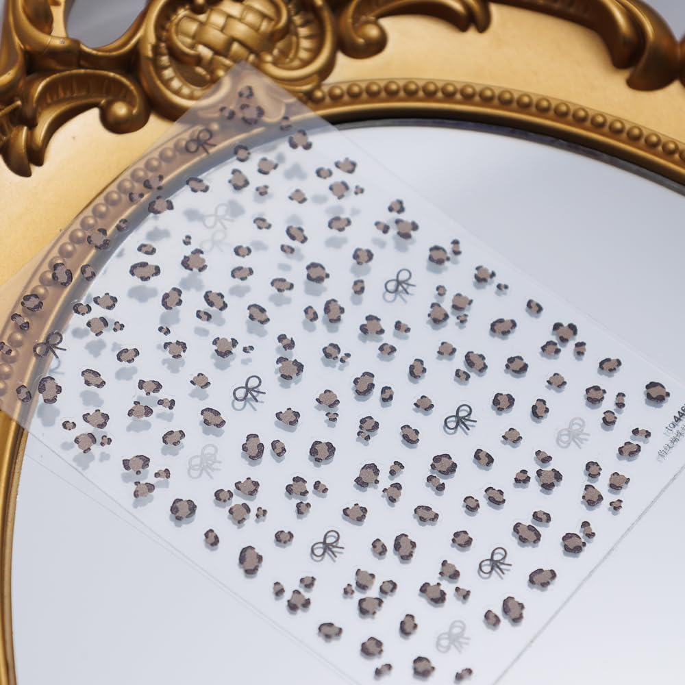 Brown Leopard Nail Art Stickers 3D Embossed Fall Winter Nail Stickers, Self-Adhesive Durable Nail Art Decals for Women Girls, Nail Wraps Decoration Manicure for DIY Acrylic Nail Accessories