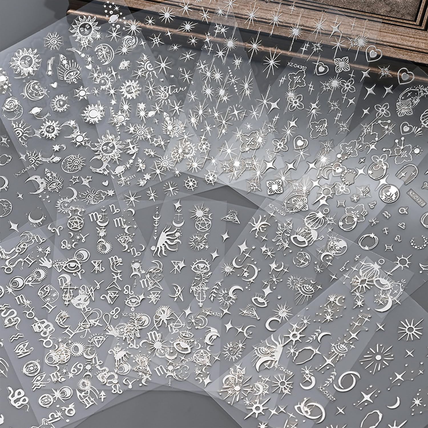 - Quantity: You will get 12 sheets of silver nail art stickers, including star and moon pattern designs, not easy to fall off or fade, can easily create a variety of themed nail art