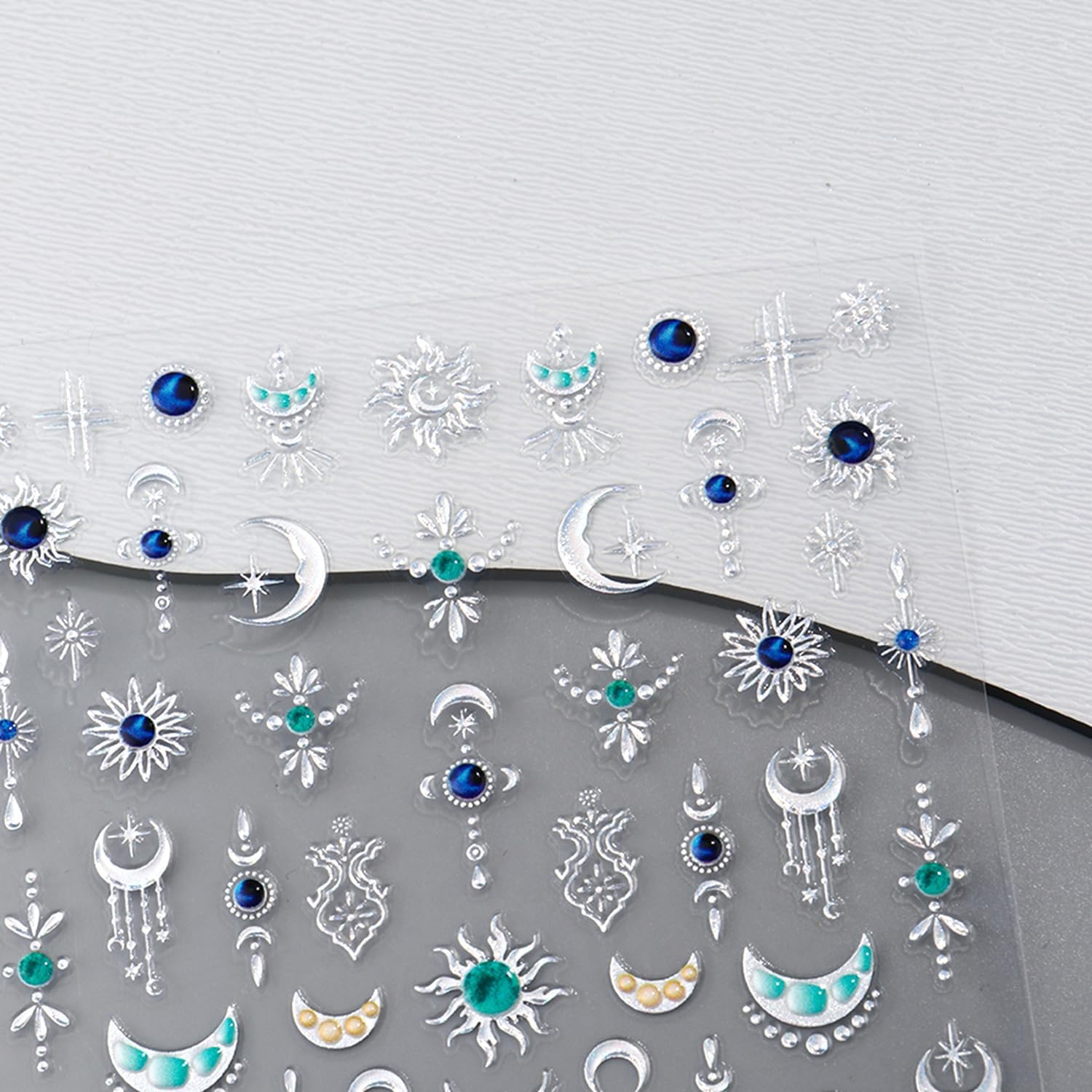 - Quantity: You will get 4 sheets of Bohemia nail art stickers, including star and moon pattern designs, not easy to fall off or fade, can easily create a variety of themed nail art