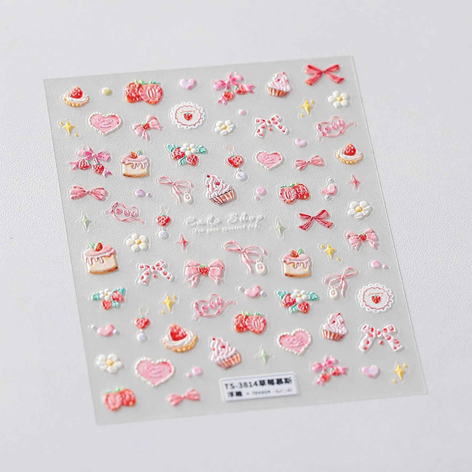 5D Embossed Bow Nail Stickers Pink Bow Nail Decals for Acrylic Nails Designs Self Adhesive Pink Star Cake Flower Nail Art Stickers Cute Bow Nail Art Supplies for Women Nail Accessores